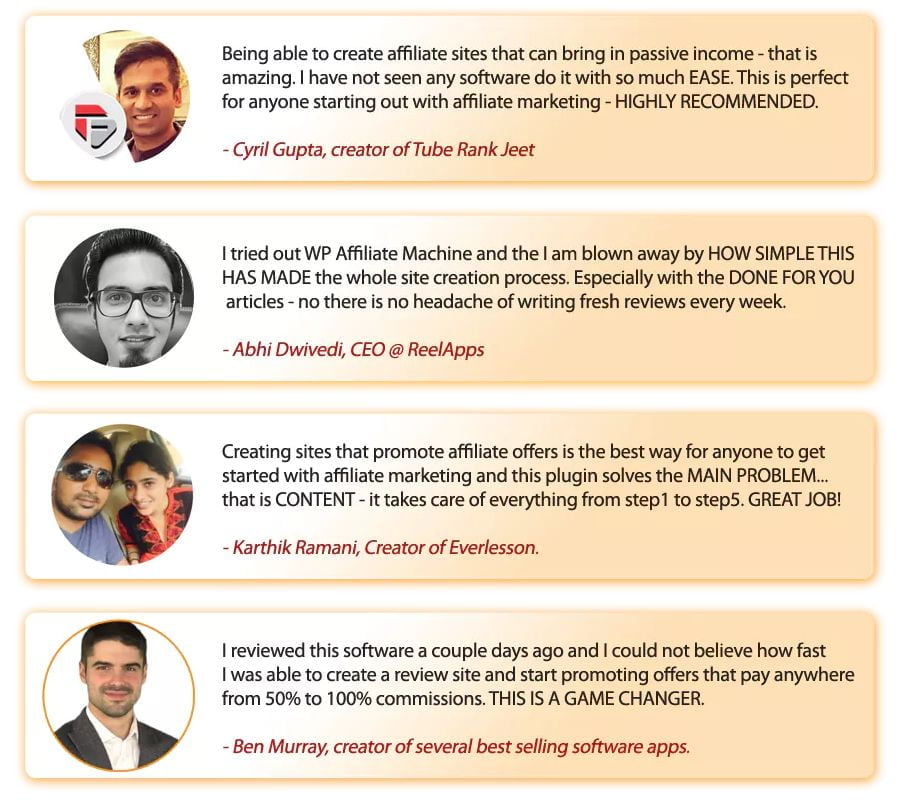 Ankur Shukla earns his reputation for lists of TOP products such as: Explaindio; VideoMakerFX; The Commission Machine; VideoRobot; Backup Beast, WP Fan Machine, WP Content Machine,… Search randomly a product and you will be surprised that ten thousands sold out together with high evaluation from experts as well as users. His achievements are admirable!
