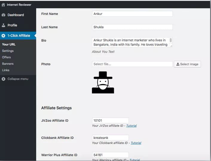 Step 2: Add Your Name, JVZOO ID, ClickBank ID & WarriorPlus Affiliate ID + Basic Info